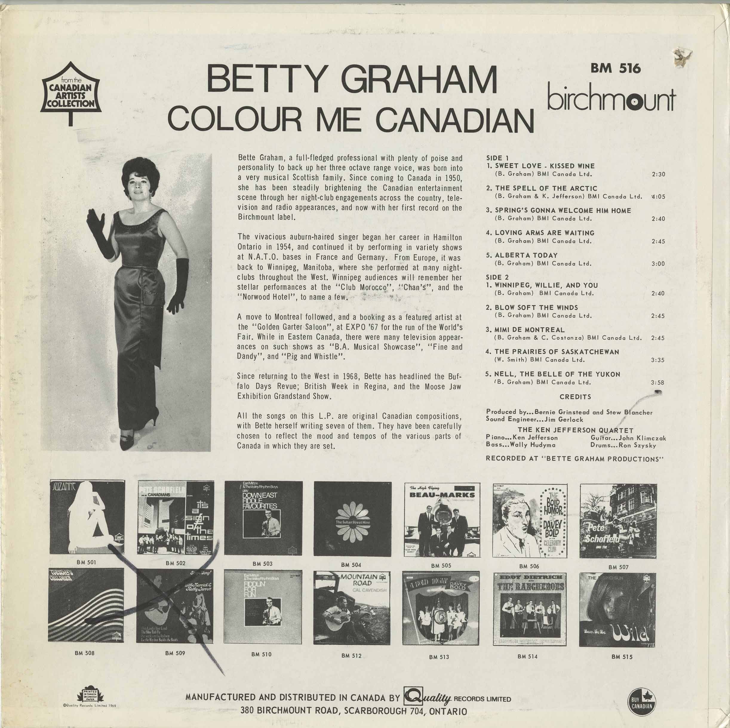 Sensational Bette Graham came about as something of a love letter from Grinstead in her memory to go along with her songs celebrating her homeland such as The Prairies of Saskatchewan, Mimi de Montreal, Alberta Today and Winnipeg Willie and You.