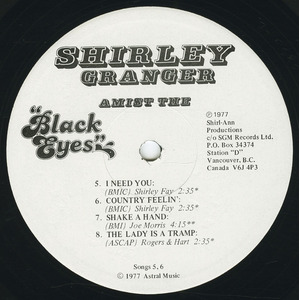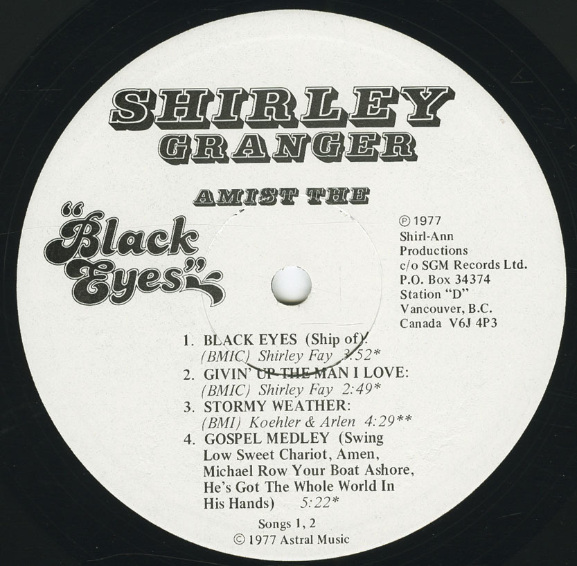 Her LP Black Eyes, recorded at SGM Studios in Vancouver and released in 1977, captured this period. Blending soul, gospel medley, standards, and original compositions written under the name Shirley Fay, the album stands as a rare and unusual artifact of British Columbia soul recording culture.