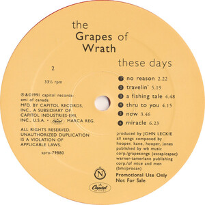 In 1992, the band released a VHS video collection entitled Those Days. The collection comprises all of their promotional videos, with the exception of "A Fishing Tale", since that video was released just after the release of this collection. It begins with the audience from a concert at Massey Hall in Toronto screaming in unison, "The Grapes of Wrath present Those Days". Between each video, there is rare footage of the band, some when they are children.