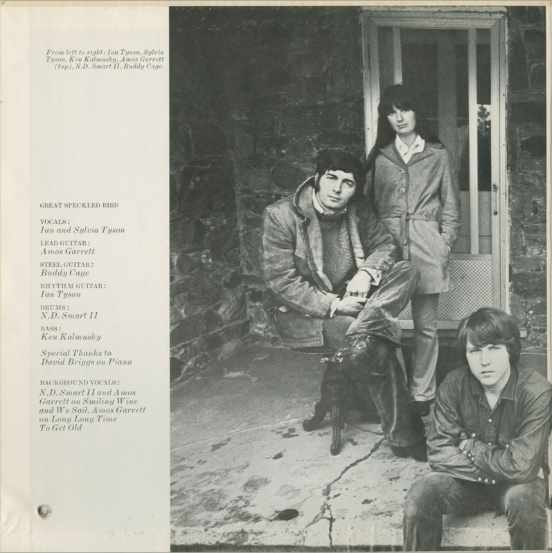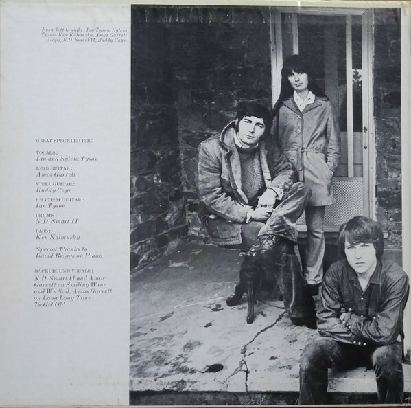 Although Great Speckled Bird was admired by fellow musicians and adventurous listeners, the Tysons ran into some resistance when they performed the material onstage. "When we first put together the Great Speckled Bird, we had some very adverse reaction," Sylvia told me in our 2001 interview. "We had some situations where the minute people saw pedal steel on stage, they would get up and walk out. They thought of us as folk music, as the acoustic thing, and the idea of an electric instrument on stage was an anathema to certain people who, for whatever reason, just couldn't deal with it." The album didn't sell well, though Great Speckled Bird were part of the 1970 Festival Express tour, a sort of traveling rock festival that barnstormed Canada by train, also including Janis Joplin, the Band, the Grateful Dead, and Delaney & Bonnie. Great Speckled Bird can be seen, albeit briefly, in the Festival Express movie, though that footage didn't give them any publicity at the time, as the film didn't come out until 2003.