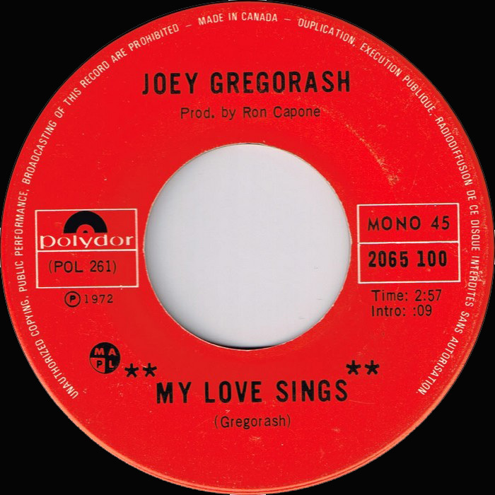 Gregorash, Joey - My Love Sings b/w Sugar Ride