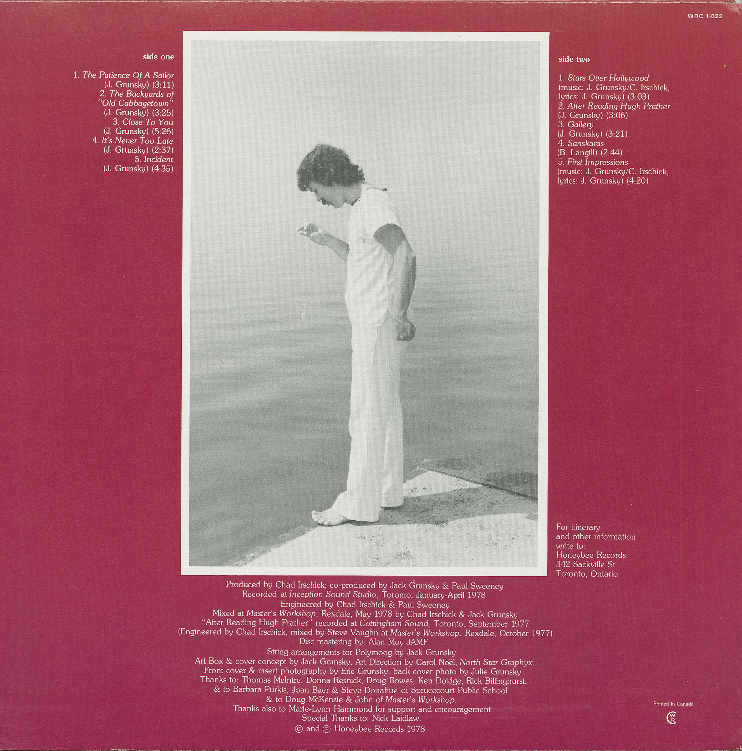 In 1974 Jack Grunsky moved with his family back to Canada where he connected with record producer Chad Irschick, and released an independent album titled, The Patience Of A Sailor.