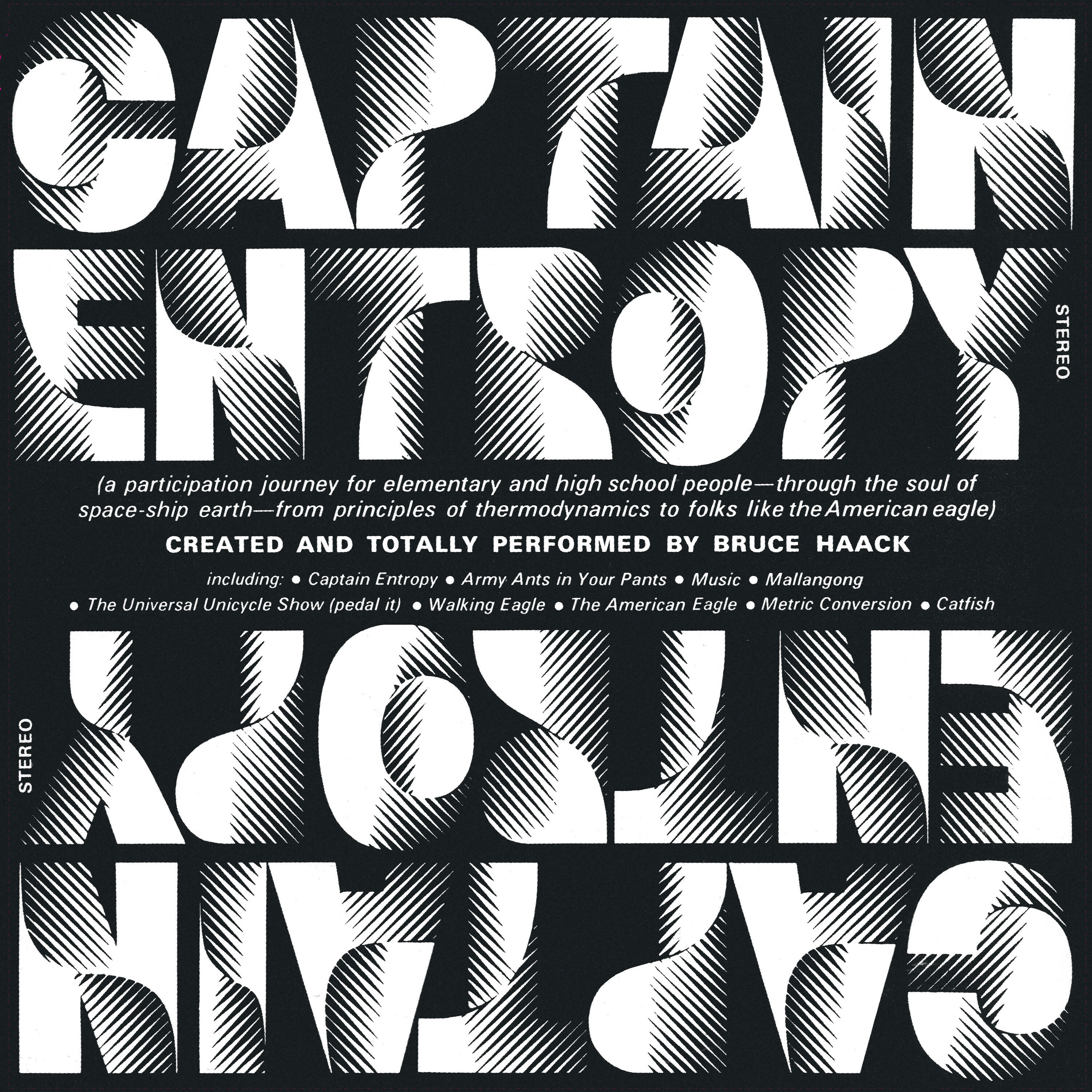 CAPTAIN ENTROPY (a participation journey for elementary and high-school people~-through the soul of space-ship earth--from principles of thermodynamics to folks like the American eagle) Created and totally performed by BRUCE HAACK." - from Original Liner Notes