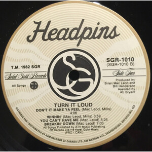 The Headpins began in 1980 as a part-time project of the multi-instrumentalist (guitar, keyboards, drums) and songwriter Brian 'Too Loud' MacLeod and the bassist Ab Bryant from Chilliwack, with the vocalist Denice McCann and the drummer Matt Frenette. McCann and Frenette were replaced, respectively, by Darby Mills and Bernie Aubin, who appeared on the Headpins' first LP, Turn It Loud (Solid Gold SGR-1010). Issued in 1982, it eventually sold some 200,000 copies and included the hit 'Don't It Make Ya Feel?'