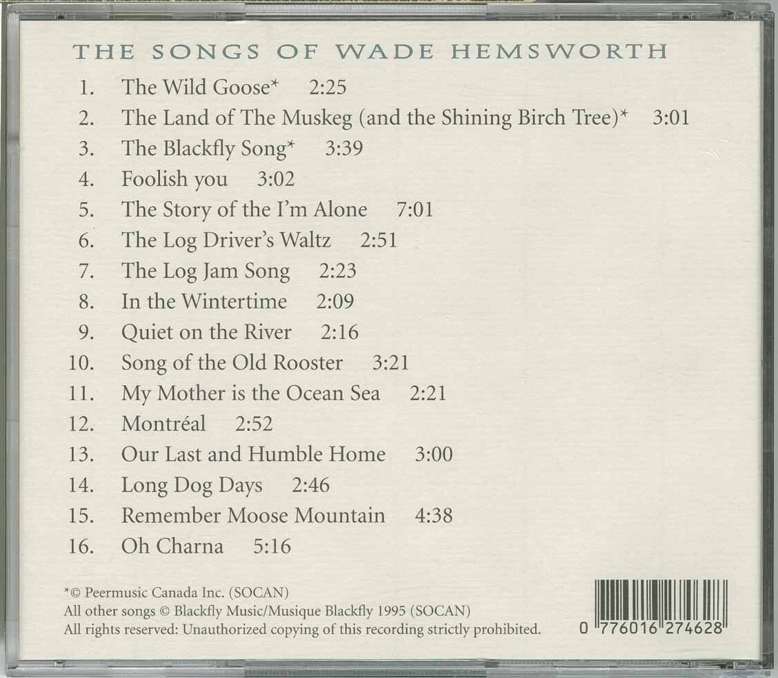 Wade Hemsworth's music has been compared to the paintings of the Group of Seven: he wrote about what he saw up close and first-hand. Born in Brantford, Ontario, he trained and worked as a topographical draftsman for the CNR and on the survey gangs for Ontario Hydro. Both of these jobs took him deep into the woods of Northern Ontario, Quebec and Labrador where he found inspiration for songs like The Wild Goose, The Log Driver's Waltz, Land of the Muskeg, and yes, The Black Fly Song. After he joined the RCAF, he was based in Newfoundland. Of his time in that province, Wade said "it was there that I came across genuine Canadian folk songs. And I was fascinated."