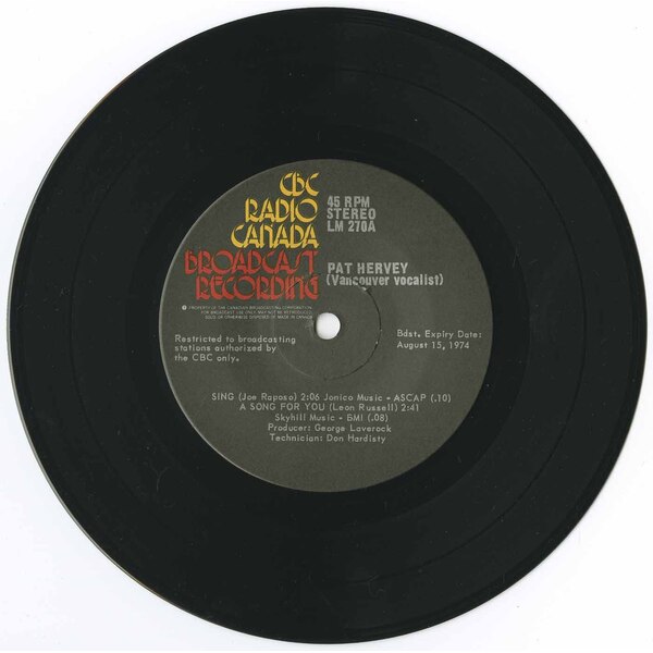 Ontario, CBC Radio Canada LM Series, Canadian Women in Song, British Columbia, Pop, Pat Hervey: Canada's Little Giant of Song, 1970's