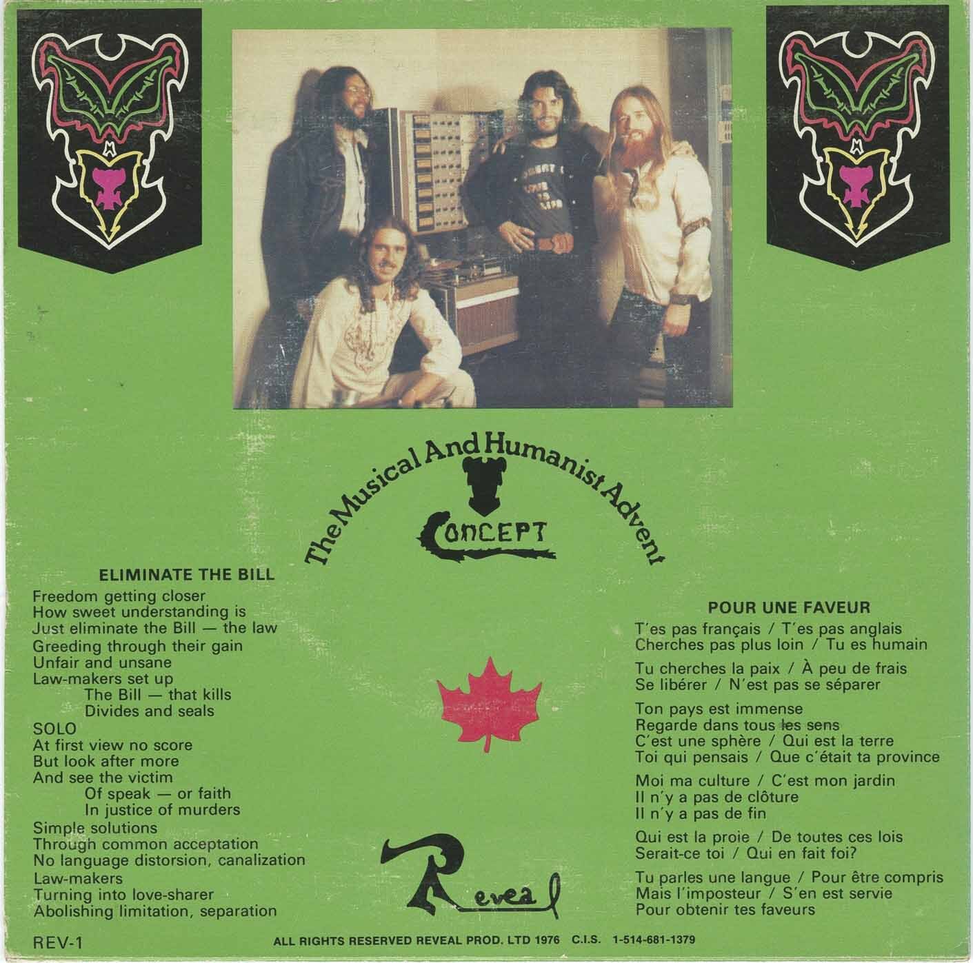Laval, Québec’s Concept was a deeply independent force in Canada’s psychedelic and progressive underground. Active from the mid-1970s through the late 1980s, the band issued all their material on their private Reveal label, combining freeform rock with cosmic themes, spiritual lyricism, and a unique philosophy they called the Humanist Advent.