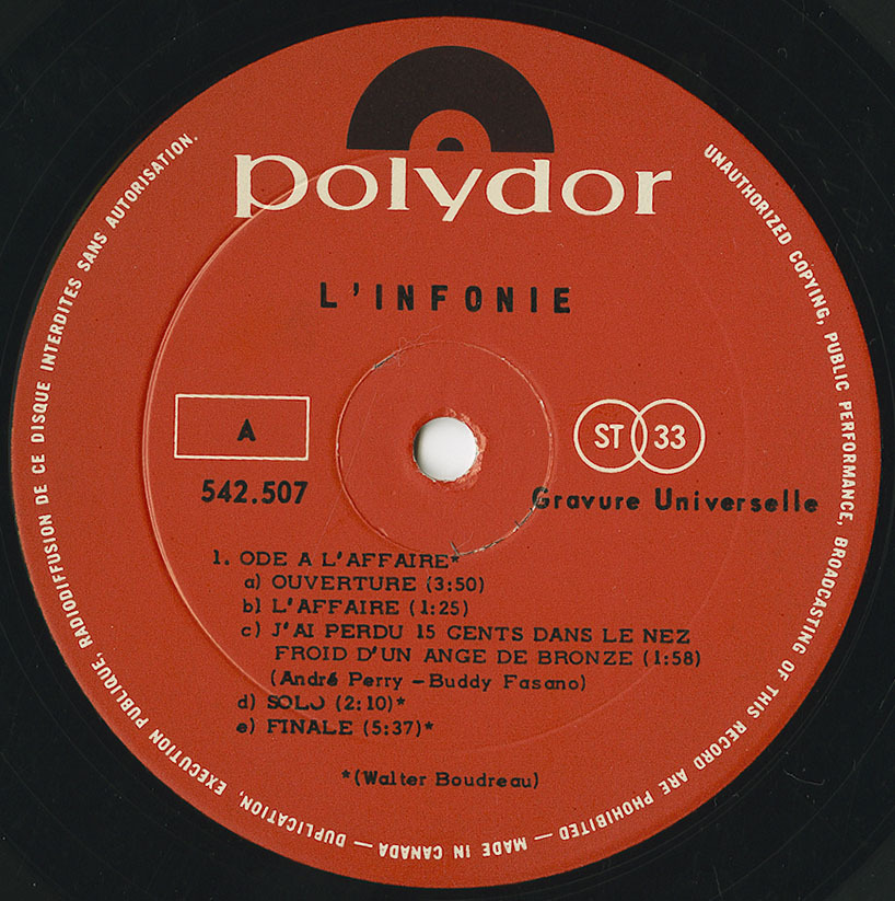 Boudreau himself would later write in Raoul Duguay: Ou, Ie poete a la voix d'o (1979): "L'Infonie is part of a historical movement that tried to shake the foundations of our culture. Shock, surprise instead of just trying to please. Going against the grain. In those days the group members weren't drop-outs, but were out of the usual standard of clean and too polite. We had seen enough, we went out of our way to be extreme, wearing toilet seats or hangers on our head for example. It might not have been totally articulated. The affinity between Raoul and myself and the other members of l'Infonie, wasn't much in what we had to say, but more in the food, sex, philosophy, music. All was subject for change."