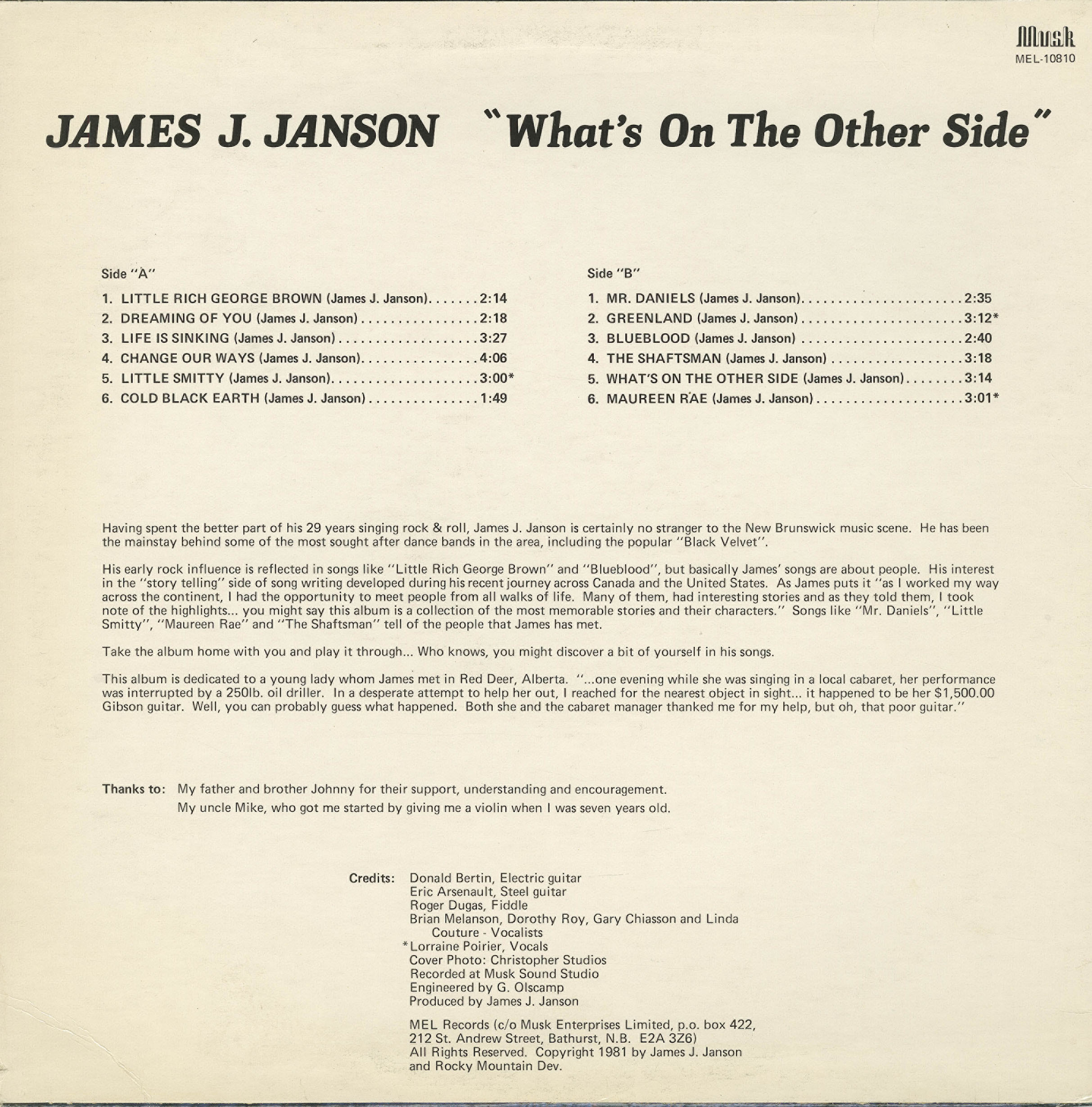 Label: Musk Records MEL 10810, Avanti Records MEL 10810