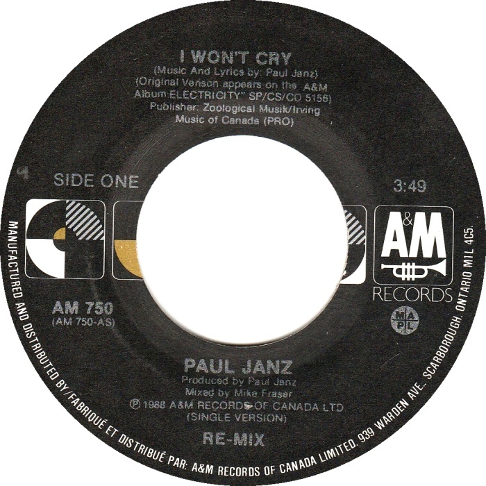 Janz, Paul - I Won't Cry b/w One Last Lie