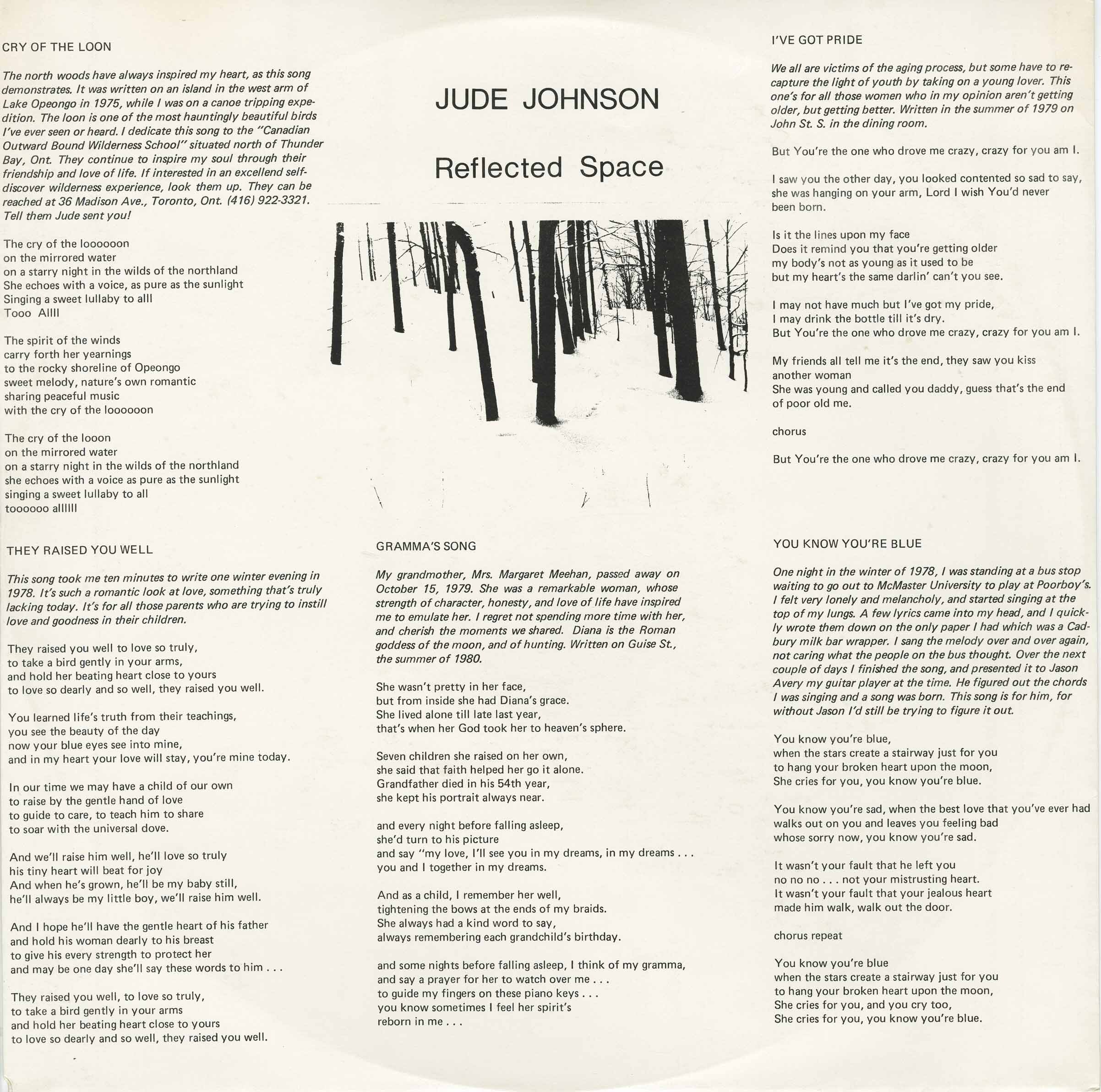 Jude Johnson: lead vocals; piano on 'Wilderness of Love' and 'Next Time We Meet'