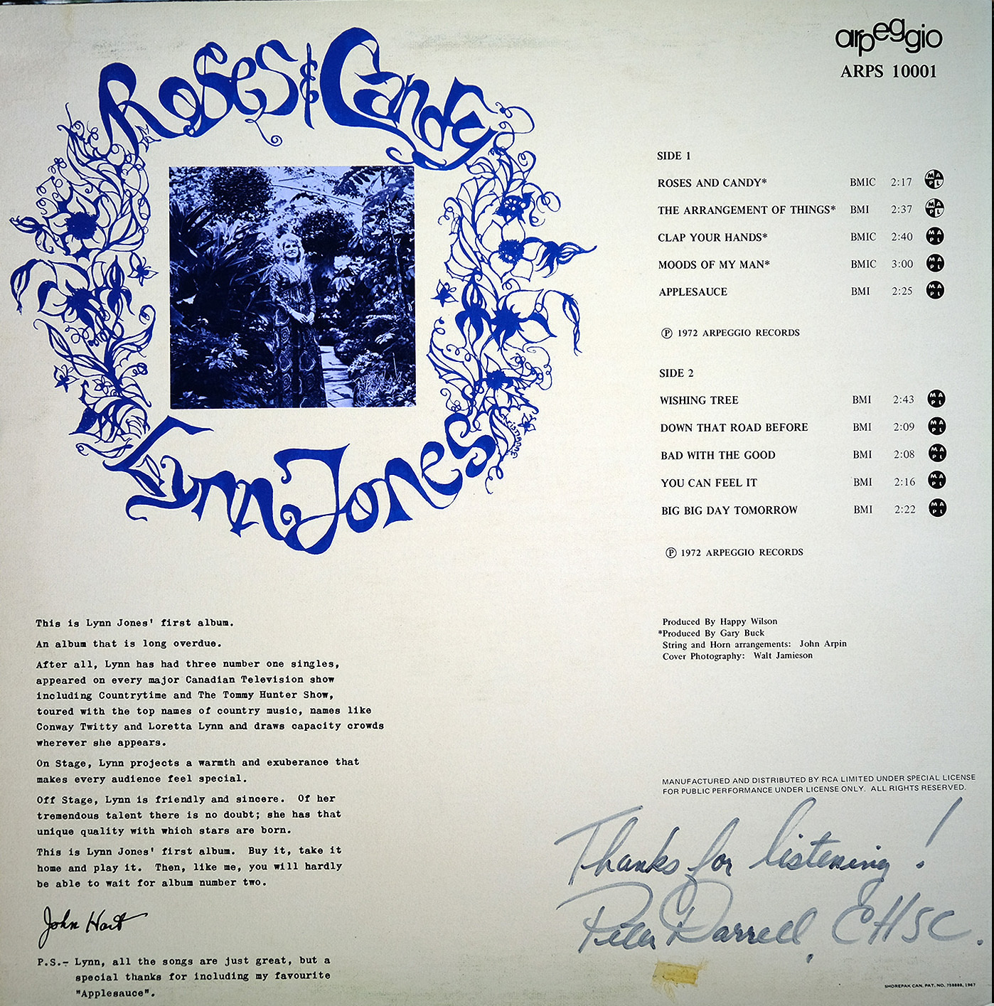 In 1972, Lynn released her debut album Roses & Candy, produced by Happy Wilson and Gary Buck and arranged by John Arpin. Prior to the album’s release, she had already charted three No. 1 singles—“Applesauce,” “The Bad with the Good,” and “Gonna Put Some Lovin’ On You”—and appeared on nearly every major Canadian television show. Following the success of “Applesauce,” which reached No. 1 for two weeks in Canada and was also released in the United States, she received the RPM Award for Most Promising Country Female Singer, establishing herself among Canada’s top five female country artists. The album, long overdue according to its liner notes by John Hart, showcased her warmth, sincerity, and natural stage charisma, traits that made her a favourite on programs like Countrytime and The Tommy Hunter Show.