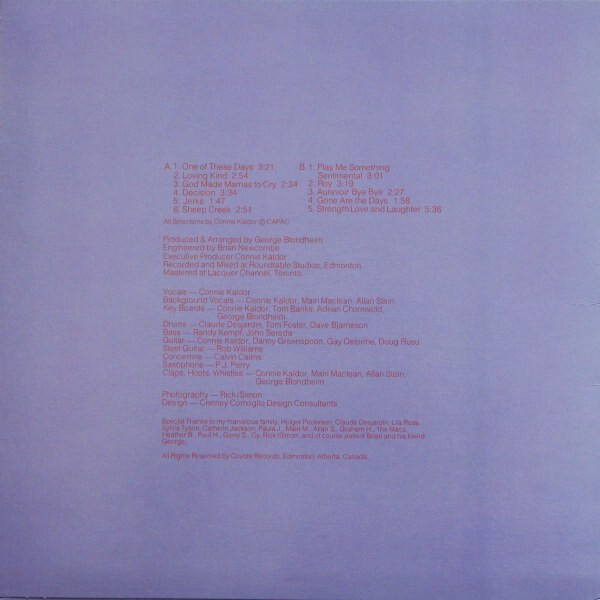 The daughter of a Lutheran church choir director, Kaldor was influenced by the music of the Beatles, Laura Nyro, Carole King and Joni Mitchell. Studying piano as a youngster, she began playing guitar while in high school. After performing in folk music coffeehouses in her hometown, Kaldor pursued an interest in theater at the University of Alberta. Graduating in 1975, she moved to Toronto to work with the avant-garde drama troupe Theater Passe Maraille. Before long, however, Kaldor returned to music and became an active presence on Canada's folk music circuit. Forming her own record label, Coyote, Kaldor released her debut album, One of These Days in 1981. Kaldor's second album, Moonlight Grocery, was nominated for a Juno award (Canada's equivalent of the Grammys) as Most Promising Female Vocalist in 1985. Kaldor's first album of children's songs, Lullaby Berceuse, released in 1988, was the recipient of Juno and Parent's Choice awards.