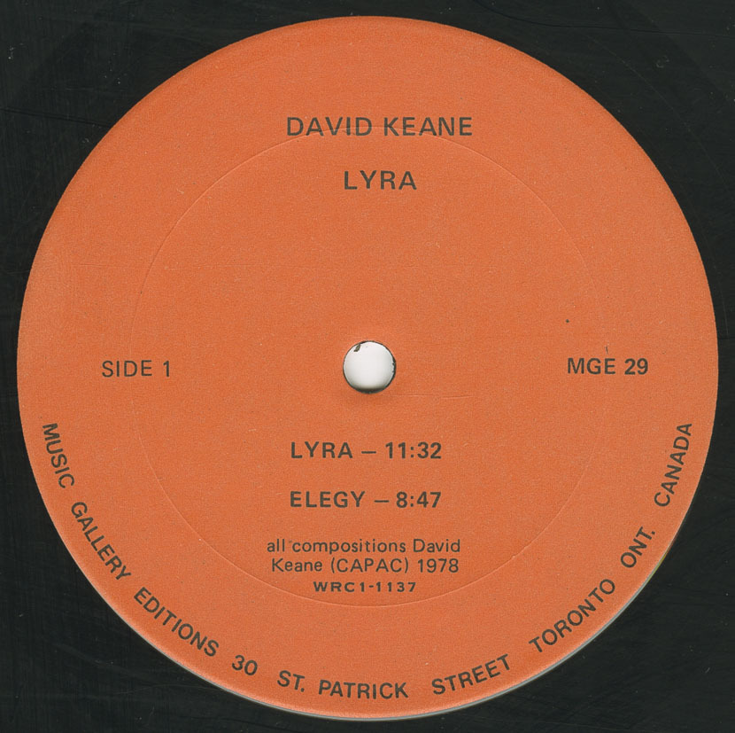Keane was an Associate of the Canadian Music Centre and a member of the Canadian League of Composers, and he is represented on dedicated albums—Lyra, Aurora (Electroacoustic Tone Poems), and Dialogics—as well as on compilations such as The Anthology of Canadian Music. His vinyl-era output was later gathered in a two-disc anthology issued in April 2023, drawing together Lyra (Music Gallery, 1979), Aurora (Cambridge Street Records, 1985), and his CAPAC “Portrait Musical” single, with contextual material from the original releases.