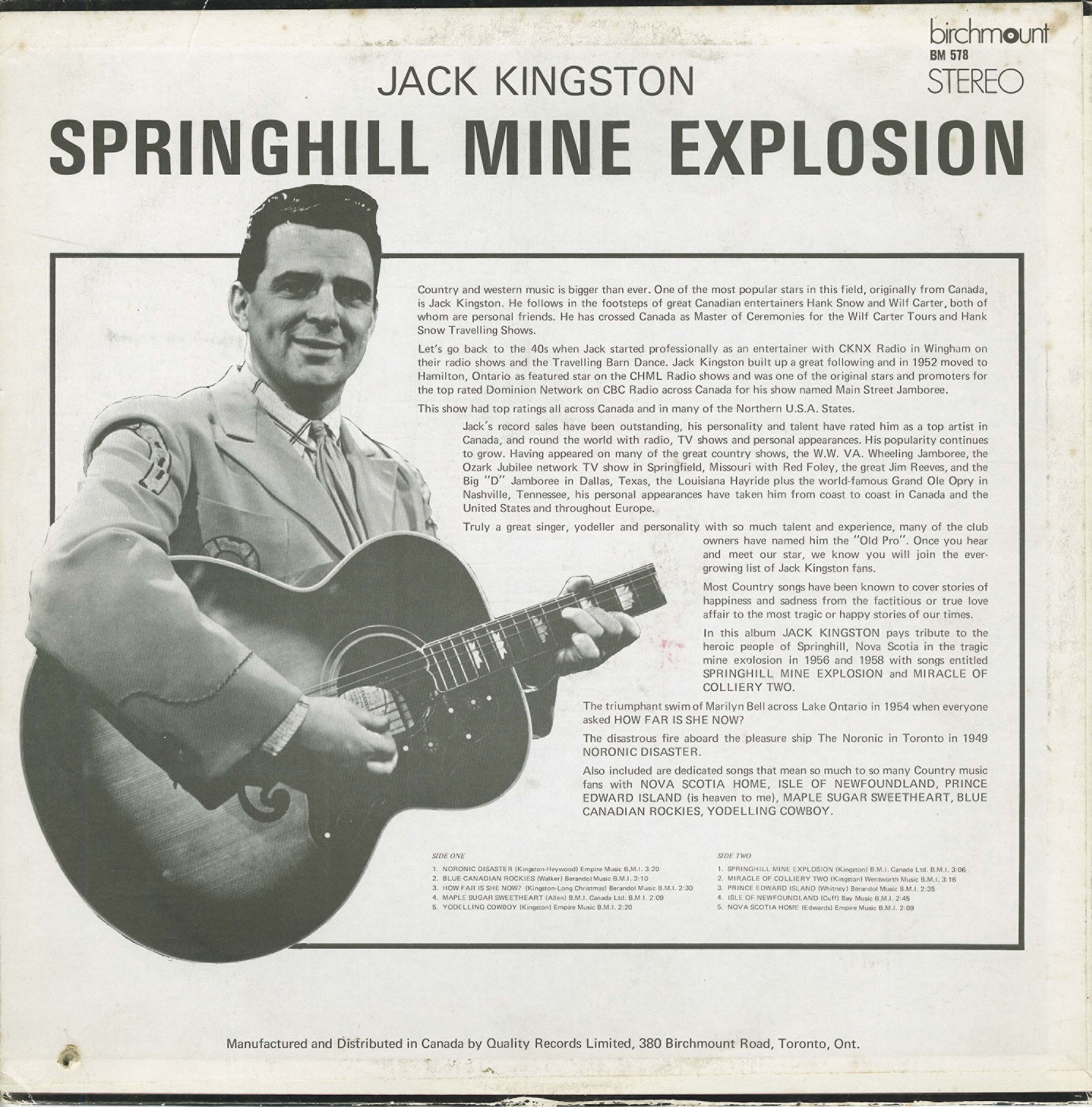 Kingston, Jack - Springhill Mine Explosion
