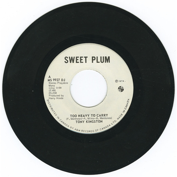 Kingston, Tony - Too Heavy to Carry b/w The Worst That Could Happen