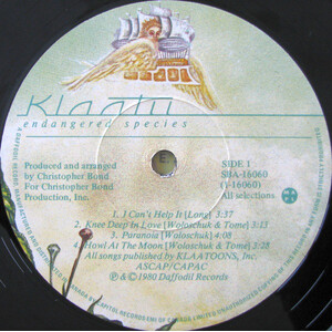 Extending that idea is Endangered Species (6-'80), Klaatu's fourth LP, which on the other hand represents quite a break from the group's past. It's the most rock 'n' roll-oriented album Klaatu's recorded, and this time out the band worked in Los Angeles with producer Chris Bond, while the band co-produced its first three in Toronto with Terry Brown. Just as significantly, Klaatu sheds the cloak of mystery that's surrounded the members' identities since the band's inception.