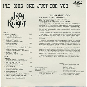 Talent and showmanship brought Joey Knight to Nashville to record this session and onto the stage of the Grand Ole Opry. These same traits have allowed him to share the concert stages of Canada and Nashville with some of the great talents, however, for Joey the highlight came when he opened for his idol, Mickey Gilley.