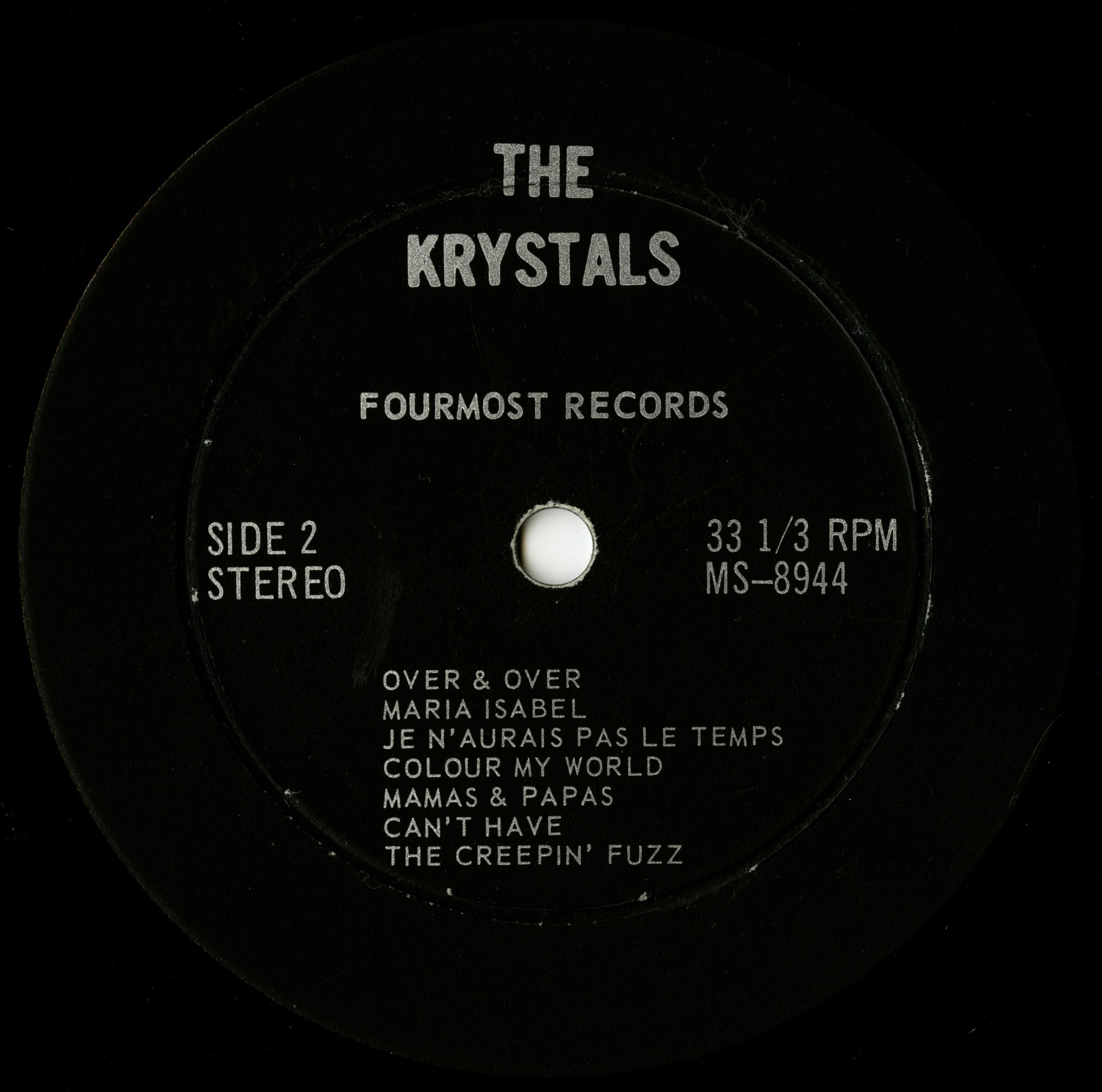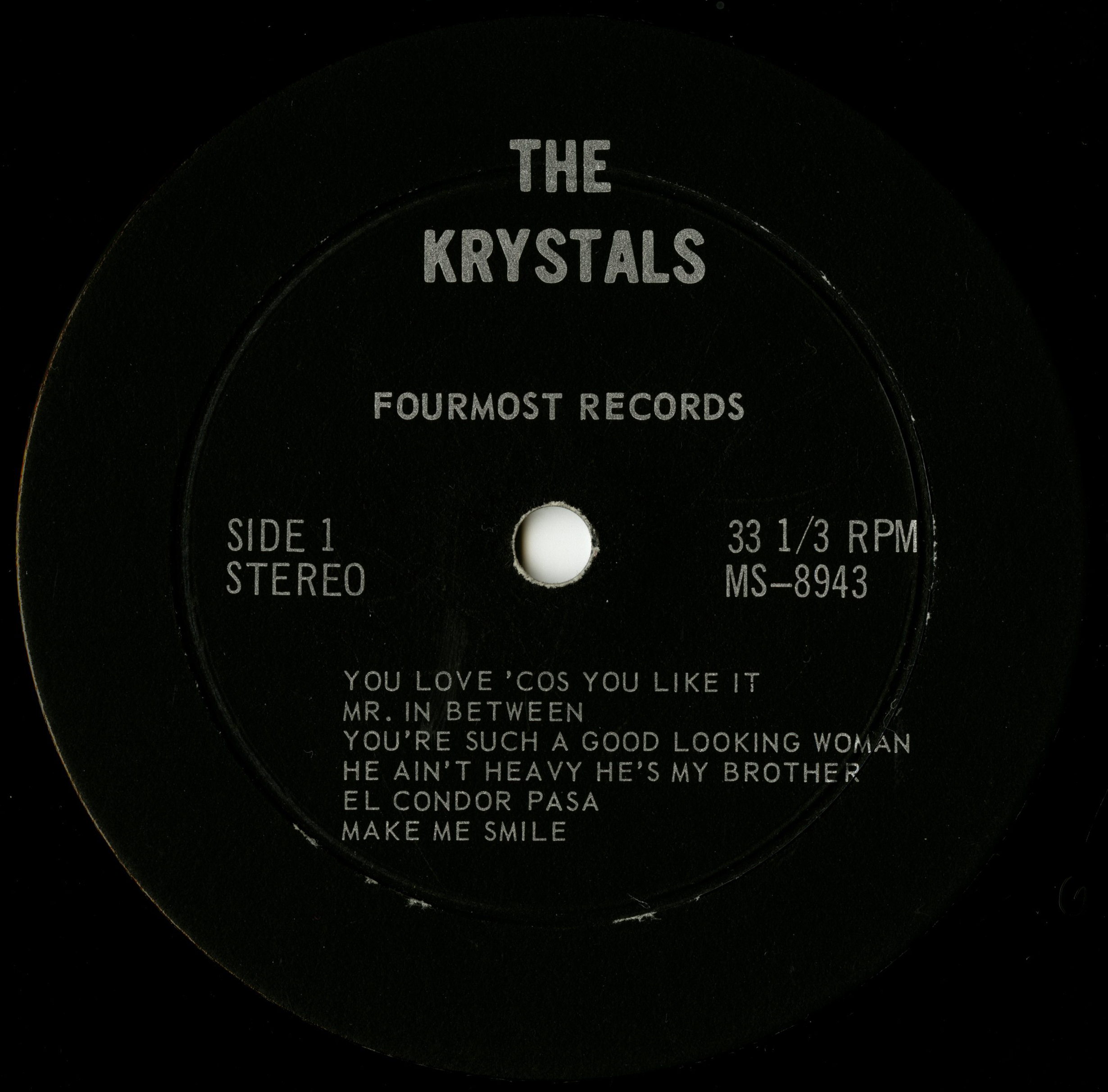 This self-produced and financed album was was recorded at R.C.A. studios in Montreal in November 1970 in a quantity of 2000 and was released in January, 1971. With the exception of 'The Creepin' Fuzz', which was written by Thornhill, the album contains cover tunes such as Simon & Garfunkel, The Hollies, and Chicago. Stan notes, "The recording was done in a tiring continuous session of 18 hours; it was an arduous job and this possibly explains the slight lack of quality. The reason for making the record was that I wanted to leave a palpable reminder of 'The Krystals' to the people of Labrador City after five years of playing music there. In the beginning of October, 1971 I went to work in South Africa, and that was also the end of the band."