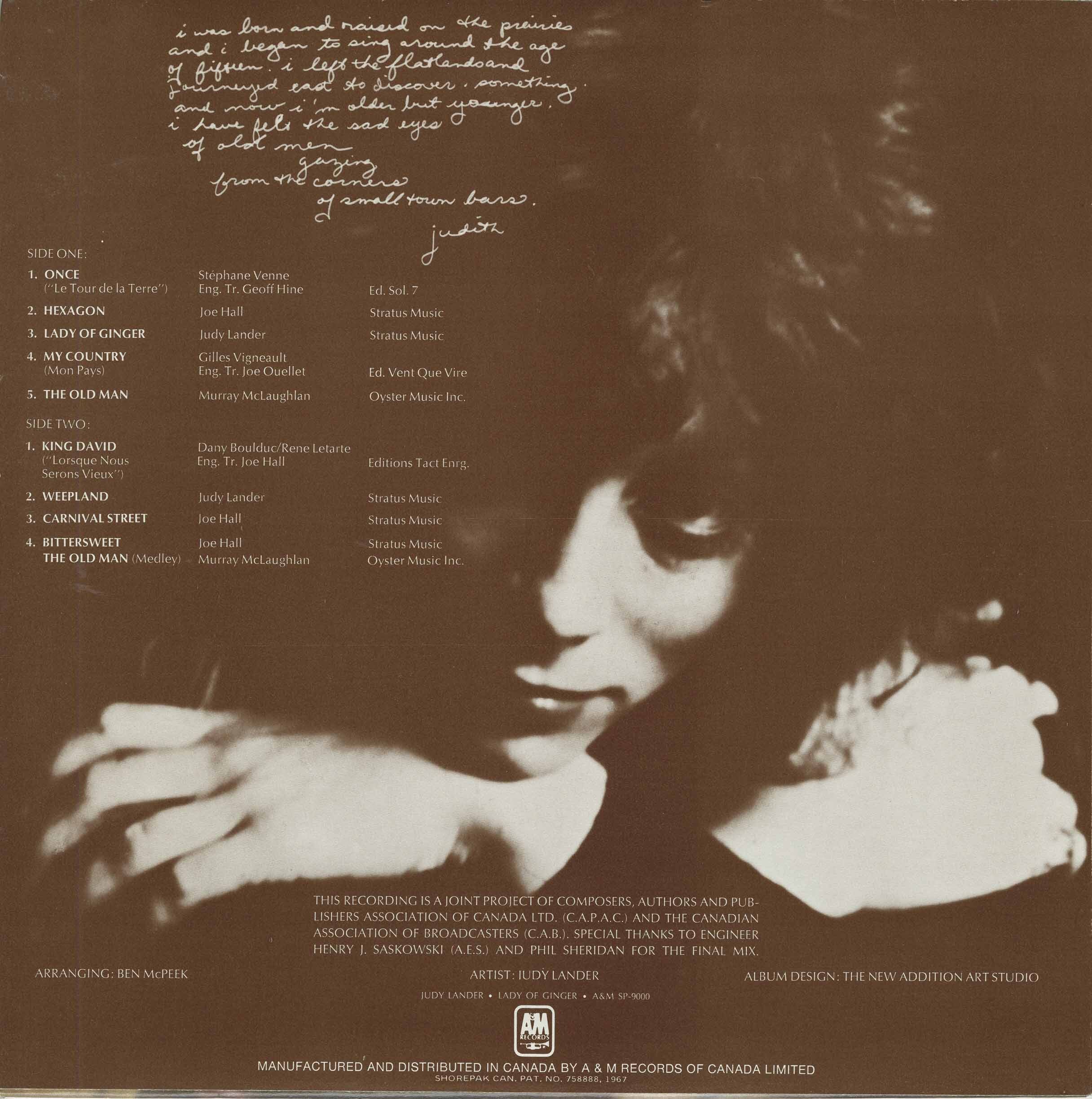 -judith, from the liner notes of Lady of Ginger (A&M SP-9000, 1970)