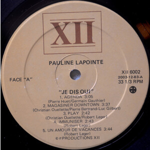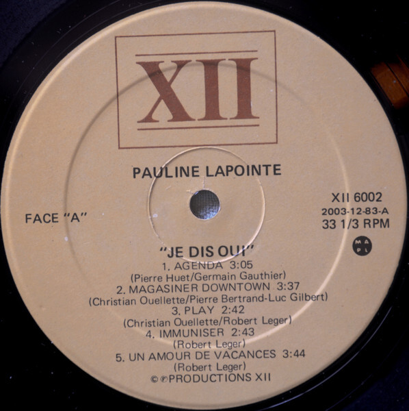 Lapointe, Pauline - je dis oui Face "A"