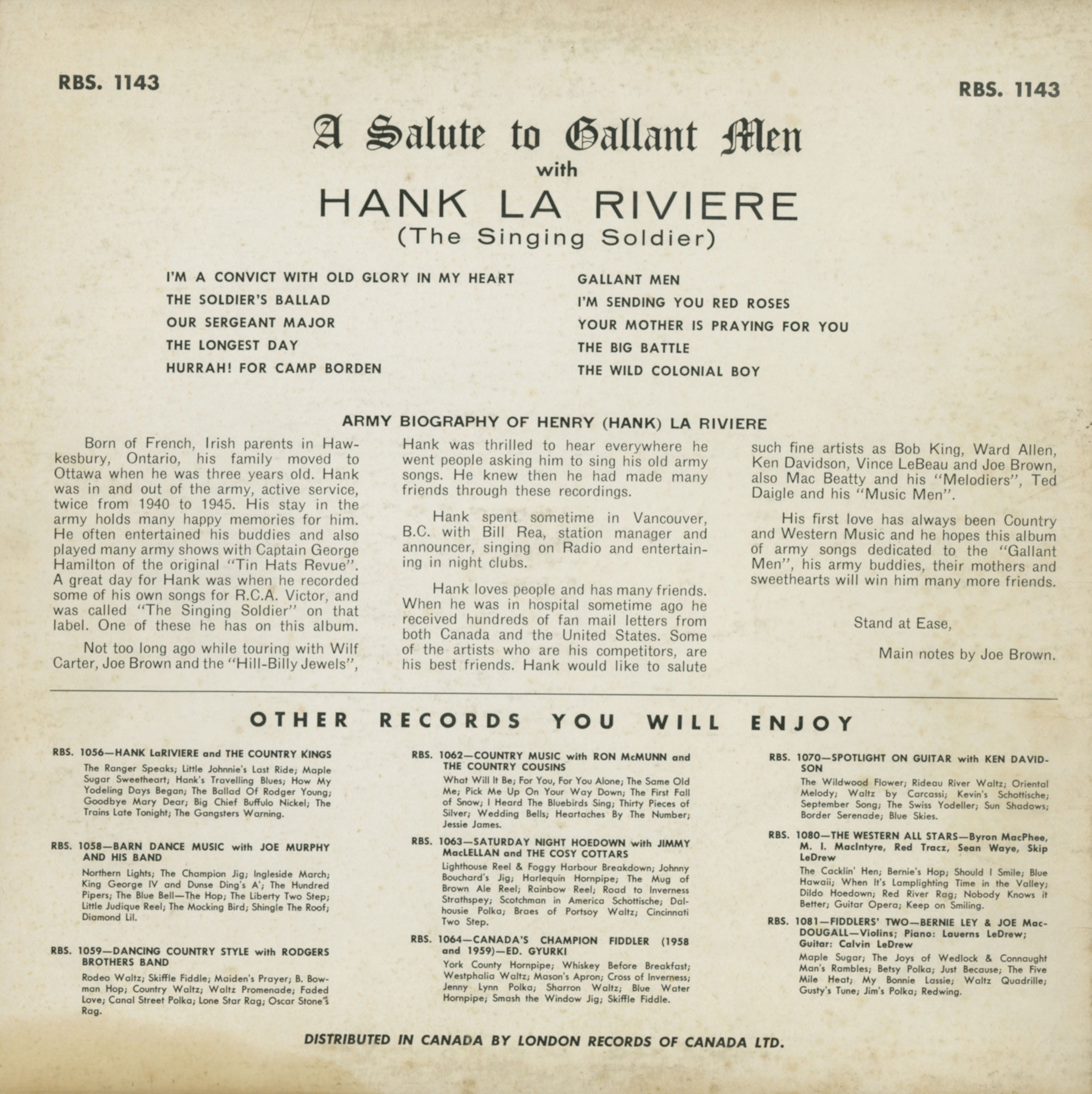 Hank LaRiviere (Hank Rivers) / A Salute to Gallant Men BACK