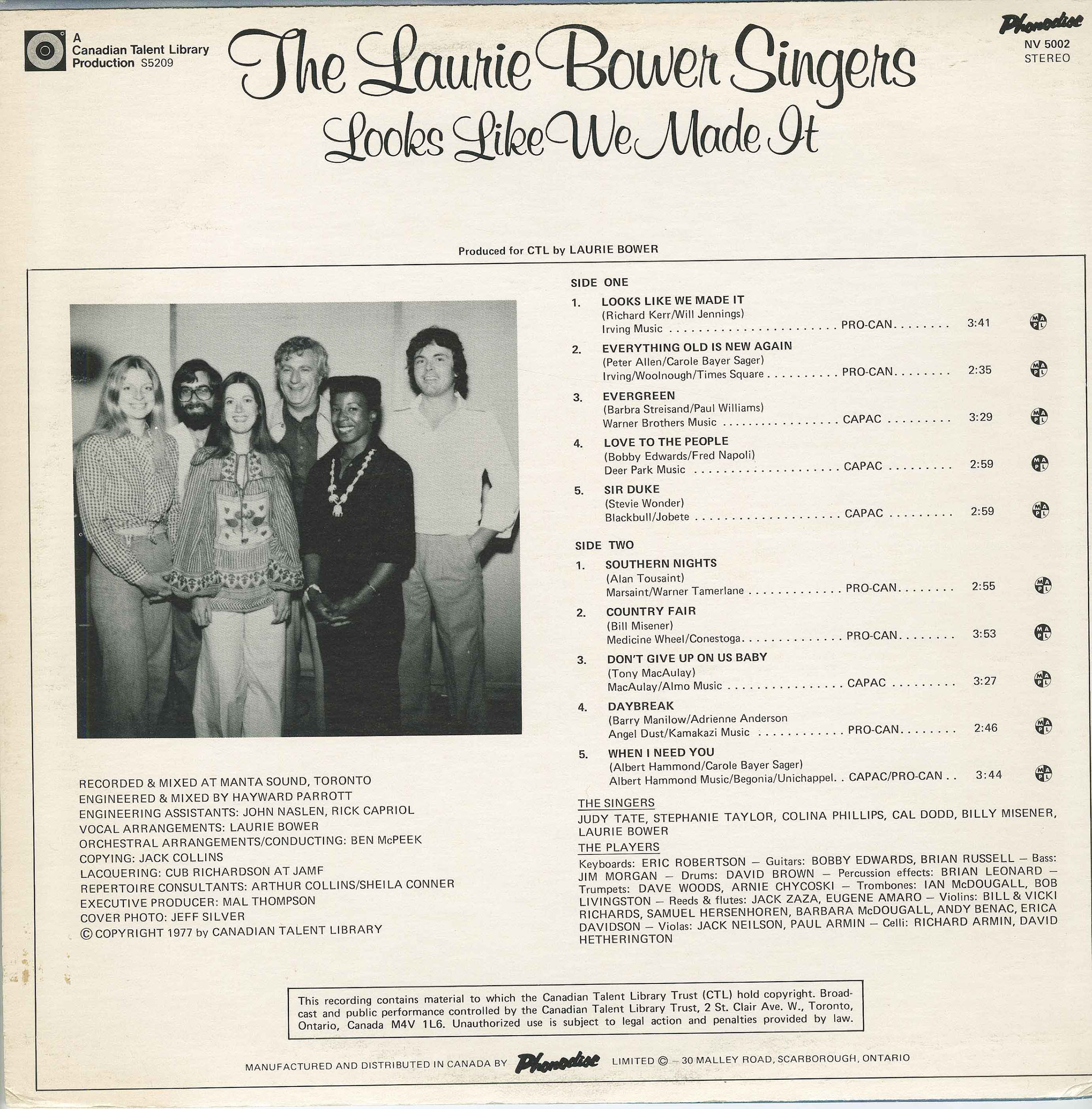 By the end of the 1970s the group had even reached the U.S. market, with three albums released stateside, but the tides of popular taste were shifting. While disco and rock dominated commercial radio, the Laurie Bower Singers remained most valuable in the worlds of broadcasting, jingles, and live television. Bower himself branched out in the early 1980s, co-founding the Spitfire Band and continuing to play trombone with big bands led by Guido Basso, Peter Appleyard, and Jim Galloway.