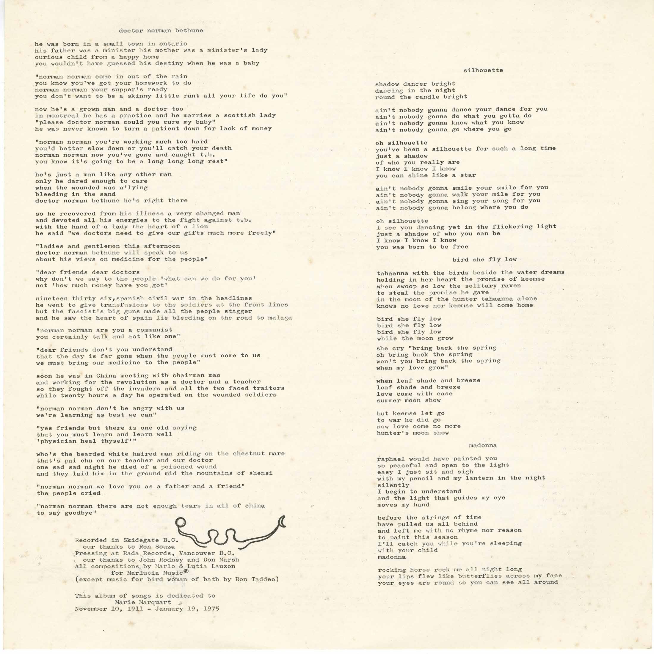 One of the tracks is a beautiful tribute to Doctor Norman Bethune. Norman Bethune was a Canadian communist doctor (member of the Canadian Communist Party of Canada) who, while in China and Spain invented the first mobile blood transfusion unit as well as the first mobile medical unit and other surgical instruments. He dedicated his life by giving medical care to the disadvantaged and is a Canadian hero.