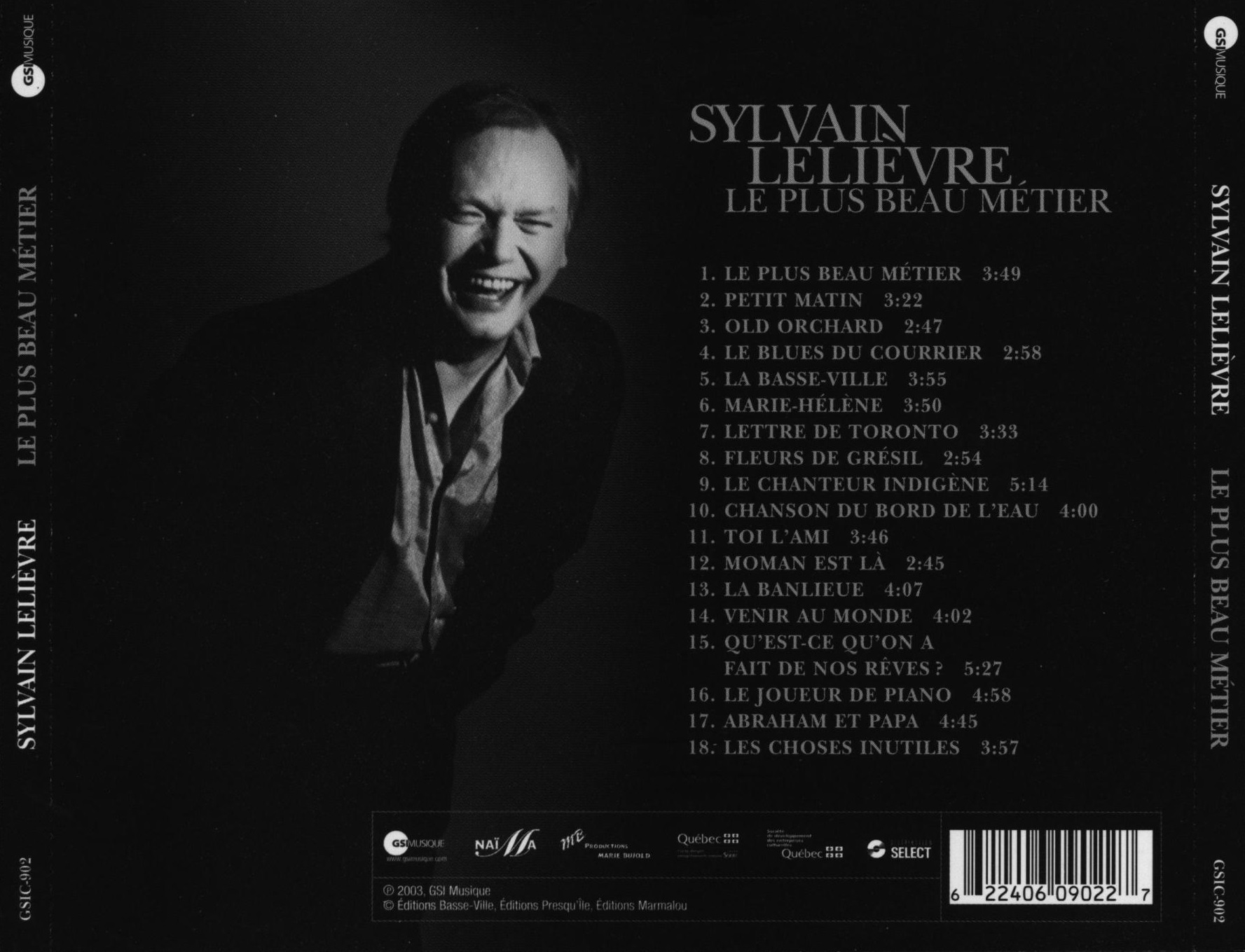 Le Plus Beau Métier CD case back cover