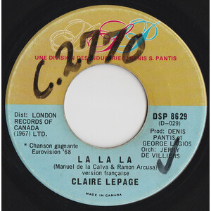 La La La (He Gives Me Love) (The 1968 Eurovision's No. 1 Song) b/w La La La (version Francaise)