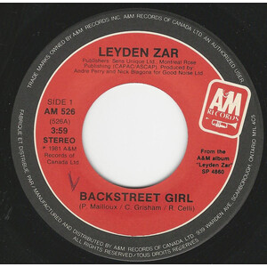 Leyden Zar - Backstreet Girl b/w Danger Zone