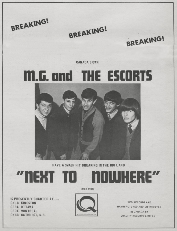 Despite receiving promotion from Quality Records and even a U.S. release on Mala Records, the single would be their last. That September, the band played a major performance at Expo 67’s “Garden of Stars”, sharing the stage with some of the biggest names in music. But within months, M.G. & The Escorts were no more.