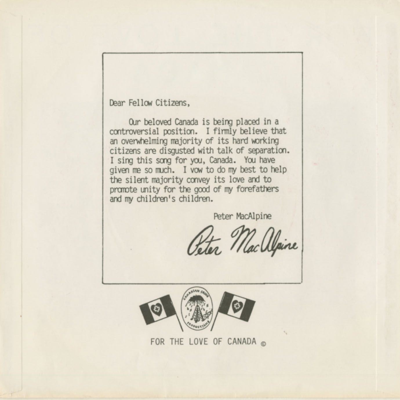 Peter MacAlpine / For the Love of Canada b/w For the Love of Canada BACK