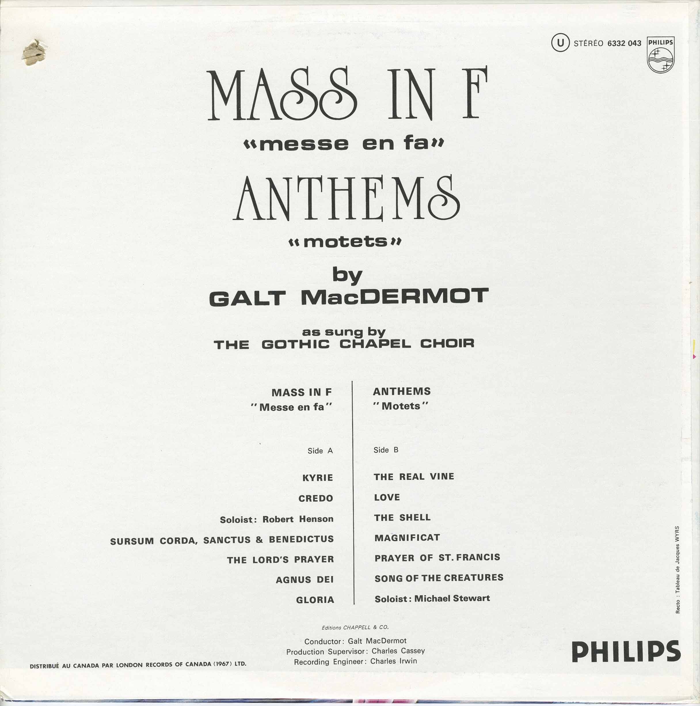 MacDermot, Galt - Mass in F (Messe En Fa): Anthems
