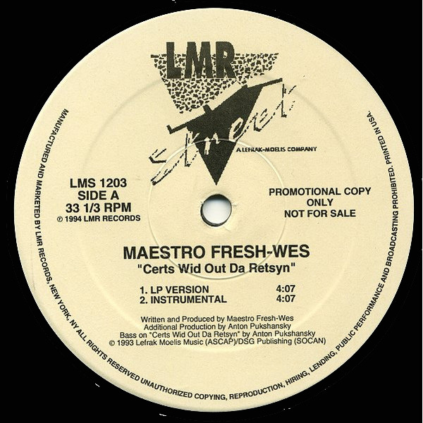 Maestro Fresh Wes (Wesley Williams) - Certs Wid Out Da Retsyn (promo)