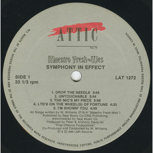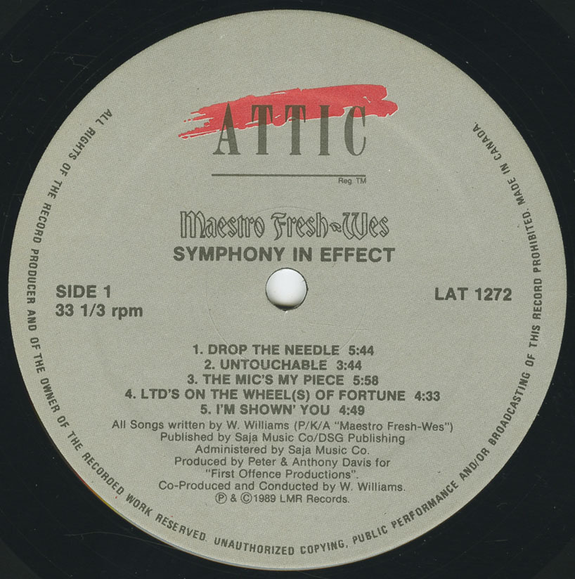 After making his radio debut on Toronto's CKLN in 1983, Maestro formed the Vision Crew with Ebony MC. The duo opened for hip-hop acts such as Public Enemy, Ice-T, and Beastie Boys before breaking up in 1987. Originally known as Melody MC, he changed his alias to Maestro Fresh-Wes in 1988 and released the independent demos You Can't Stop Us Now and "I'm Showin' You", which featured his new DJ, LTD. The next year, he performed at the New Music Seminar in New York City, where he walked away with a record deal with independent label LeFrak-Moelis Records (LMR). Later that year, he released Symphony in Effect which included "I'm Showin' You" and "Just Swingin'", featuring his friend Ebony MC. Maestro's manager Farley Flex also made an appearance on the track "LTD's on the Wheel(s) of Fortune".
