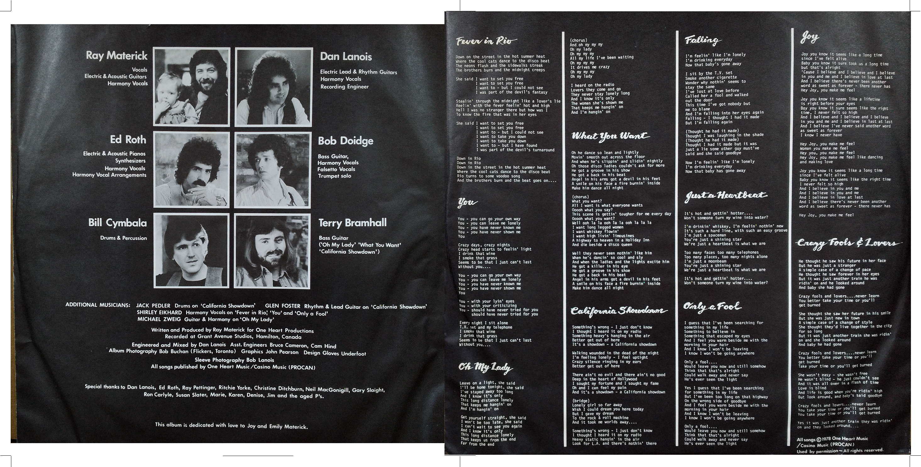 Ed Roth: electric & acoustic pianos, synthesizers, harmony vocals, harmony vocal arrangements