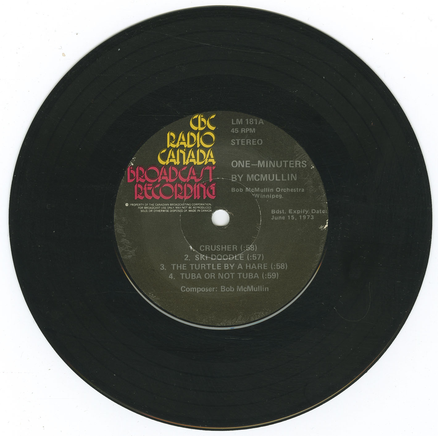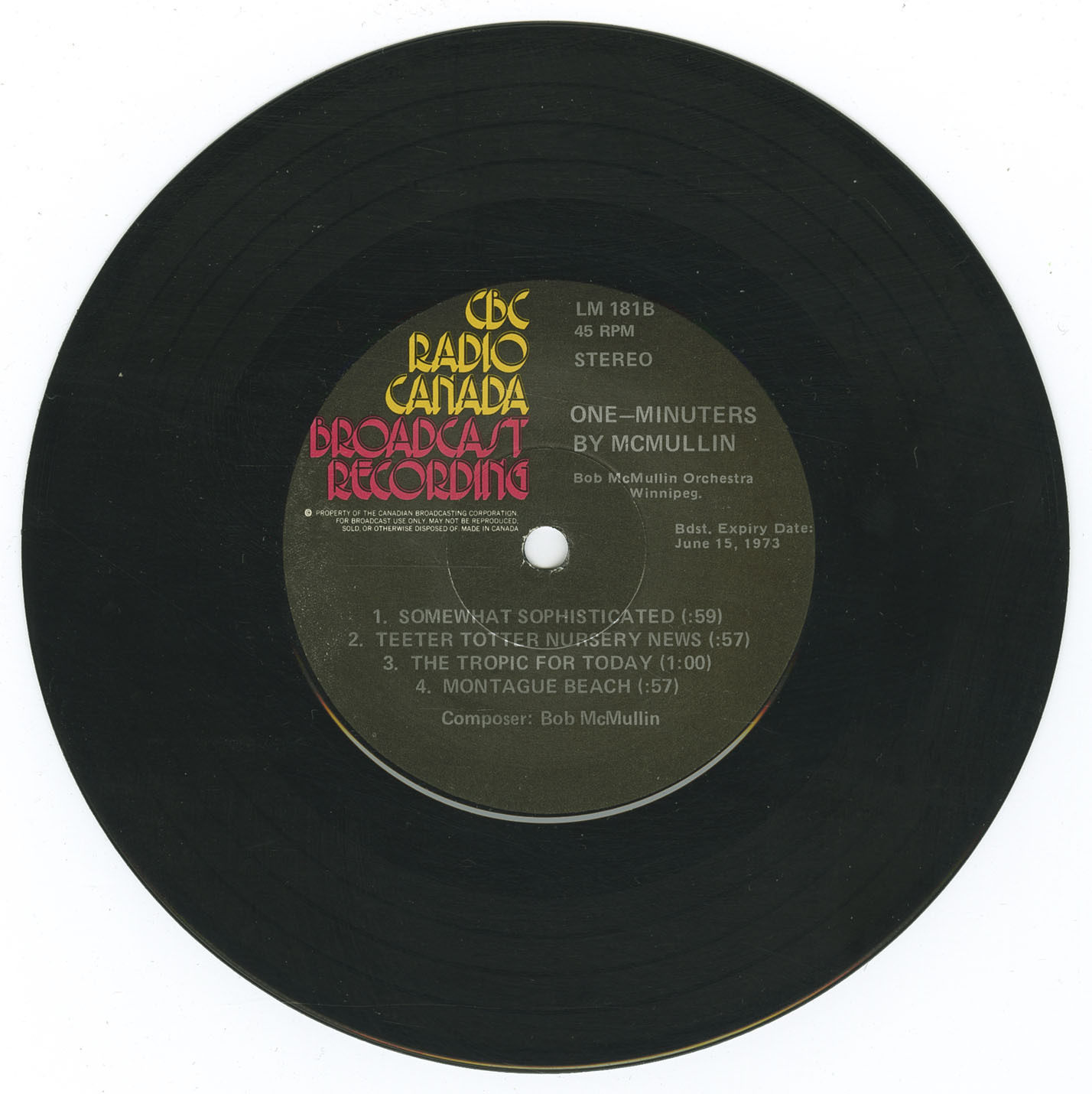 McMullin’s output was prolific, with over 150 original compositions spanning classical, jazz, variety, musical comedy, and rock ’n’ roll. Many of his works were used as themes or background cues for CBC programs, network radio, and fourteen film documentaries. As musical director for Winnipeg’s Rainbow Stage, he conducted productions of West Side Story, Oklahoma!, South Pacific, and other Broadway favourites, backing artists such as Gordon MacRae, Anita Bryant, Shirley Harmer, Tommy Hunter, Denny Vaughan, and The Four Lads. He also appeared at New York’s Carnegie Hall, culminating in a recording with American singer Enzo Stuarti, and conducted the Richard Club’s collaborations with the Winnipeg University Glee Club.