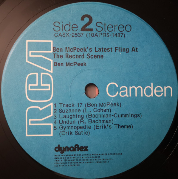 His first recorded album work came through the Canadian Talent Library. In 1966, McPeek released Colourful Configurations Conceived And Conducted By Ben McPeek (CTL M-1080), a mono LP that introduced him as a composer-arranger with a distinctive orchestral voice. The same recordings were subsequently retitled and reissued under various configurations, most notably as The Original Sounds Of Ben McPeek, His Voices And His Orchestra, appearing on Canadian Talent Library, RCA Victor, and later RCA Camden. These releases form the foundation of McPeek’s recorded catalogue and document his early orchestral and ensemble writing.
