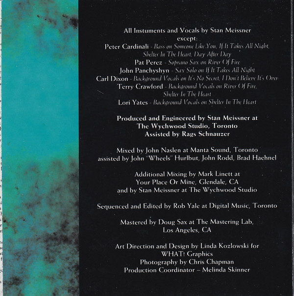 Produced and Engineered by Stan Meissner at the Wychwood Studio, Toronto