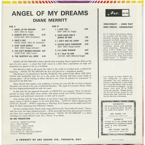Diane Merritt who inspires such confidence is twenty-one years old. She was born in Russel, Manitoba, spending her high school days in Sudbury. “The angel of everyman’s dream” Diane has been in the music limelight for only two years.
