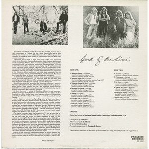 Edited and mixed at Southern Sound Studios, Lethbridge, Alberta, 1978