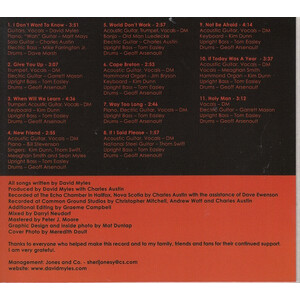 The title speaks volumes. David Myles is a fresh force on the Canadian entertainment landscape who has dared to put it all on the line with this independent release ... creativity, vocal versatility and musical dexterity. The cd is a powerful and stylish blend of jazz, blues, gospel, pop and folk influences. His trademark enthusiasm and likeability shine through on this disk.
