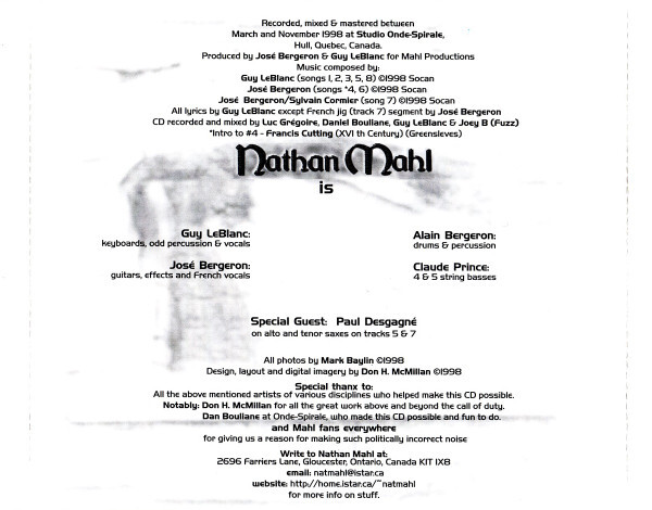 A totally amazing album from a band I've never heard of before, that is surprising, especially since this band was formed back in the end of 1980. My first thought was that this was a release by someone whose name was NATHAN MAHL, but it's actually a band. They are playing mostly instrumental melodic symphonic progressive rock with some avant-garde, Canterbury, fusion and jazz elements. The vocals as well as the musical skills and arrangements are irreproachable. This album has it all: complex mood and tempo changes, intricate instrumental passages and much more. The prominent use of keyboards, especially Fender Rhodes and Hammond is very good, and sometimes it's reminiscent to Keith EMERSON (EMERSON, LAKE & PALMER) and Rick WAKEMAN (YES). Their music is 70's oriented with reminiscences to EMERSON, LAKE & PALMER, HAPPY THE MAN, IQ, GENTLE GIANT, KANSAS, SPOCK'S BEARD, UK, YES and FRANK ZAPPA, not entirely but bits and pieces from each band. The vocals are reminiscent to Eric Woolfson (The ALAN PARSONS PROJECT) and the guitar playing sometimes reminds of Robert FRIPP and Steve HACKETT. The highlights are the opening "Without Words", the title track "Clever Use of Shadows", "Orgasmik Outburst II", "Machiavélique", "The Rubber Cage" that makes you think of FRANK ZAPPA and the final track "Call To Arms". Maybe I shouldn't point out any highlights, as all of them are masterpieces in their own right. If you think that this wasn't enough I can add that the cover is absolutely fabulous although it's only 4 pages long. The front cover is very beautiful. The production is also faultless so actually there isn't anything to complain about. This album is definitely recommended to all fans of melodic progressive rock. This is one of the best releases of 1999, and it has found its way to my list of unforgettable albums from the 90's. What can I say more than go out and get it!