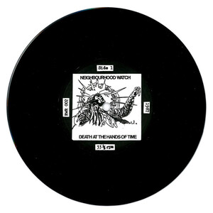 That lineup—Grant Forsythe (vocals), Ciaron Lewis (guitar), Rob Melvin (bass), and Nick Oliver (drums)—is documented on the band’s 1986 EP Death at the Hands of Time, released by Real World Records in Durham, England. Issuing a UK-pressed record was a significant achievement for a New Brunswick punk band in the mid-1980s and reflected Neighbourhood Watch’s determination to operate beyond regional limitations. The EP’s aggressive, direct sound captured both the urgency of the band and the broader social and political tensions that shaped Atlantic Canadian hardcore at the time.