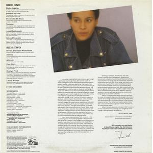 Growing up in Halifax, Nova Scotia, and, later Toronto’s working class Cabbagetown, deepened her commitment to increasing the lives of Blacks and working class people in her songs. Her love of her own, and those of others who were slighted, fill her music. It makes her political work. A politic firmly rooted in her Black working class roots. She sings not only for us. She punches music up into the world. She doesn’t idealize her experience. She is uncompromising in her craft and her vision. She is unremitting. Faith is for all our liberations. She is a song we must carry with us every day.