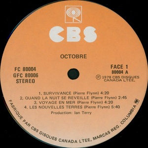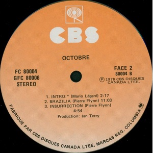 Lacquer cut and pressed at Columbia Records Pressing Plant, Don Mills, Ontario