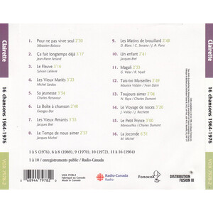 Clairette 16 Chansons 1964-1976 CD case back cover
