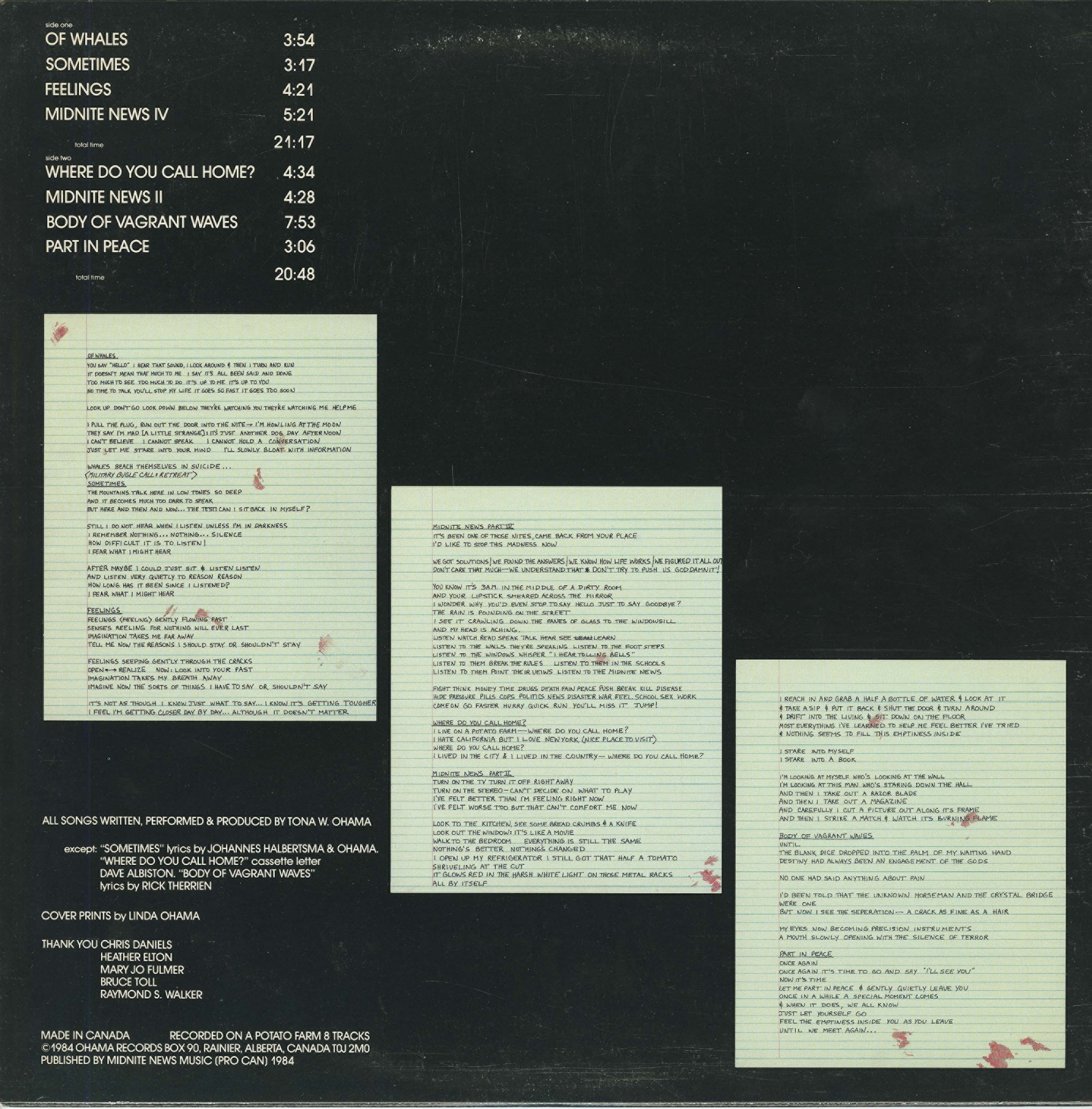 Published by Midnite News Music (PRO CAN) 1984