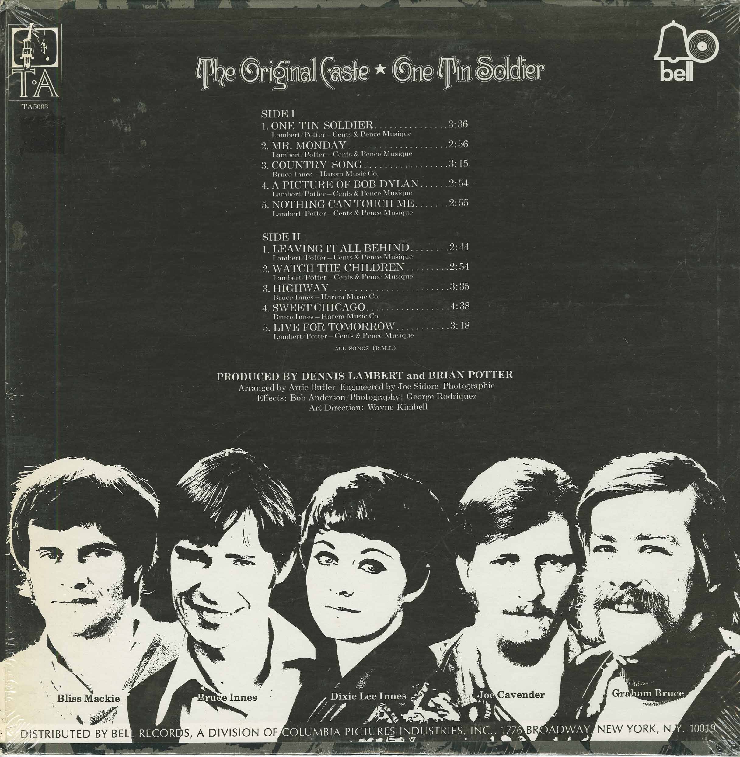 Through Innes's former label, Dot Records, they recorded two singles including "I Can't Make It Anymore" (1968) which was less than a blip on the music industry radar. However, after signing with TA Records, a label distributed by Bell Records (Columbia), in 1969, Innes met writers Dennis Lambert and Brian Potter, who would produce The Original Caste’s first album.
